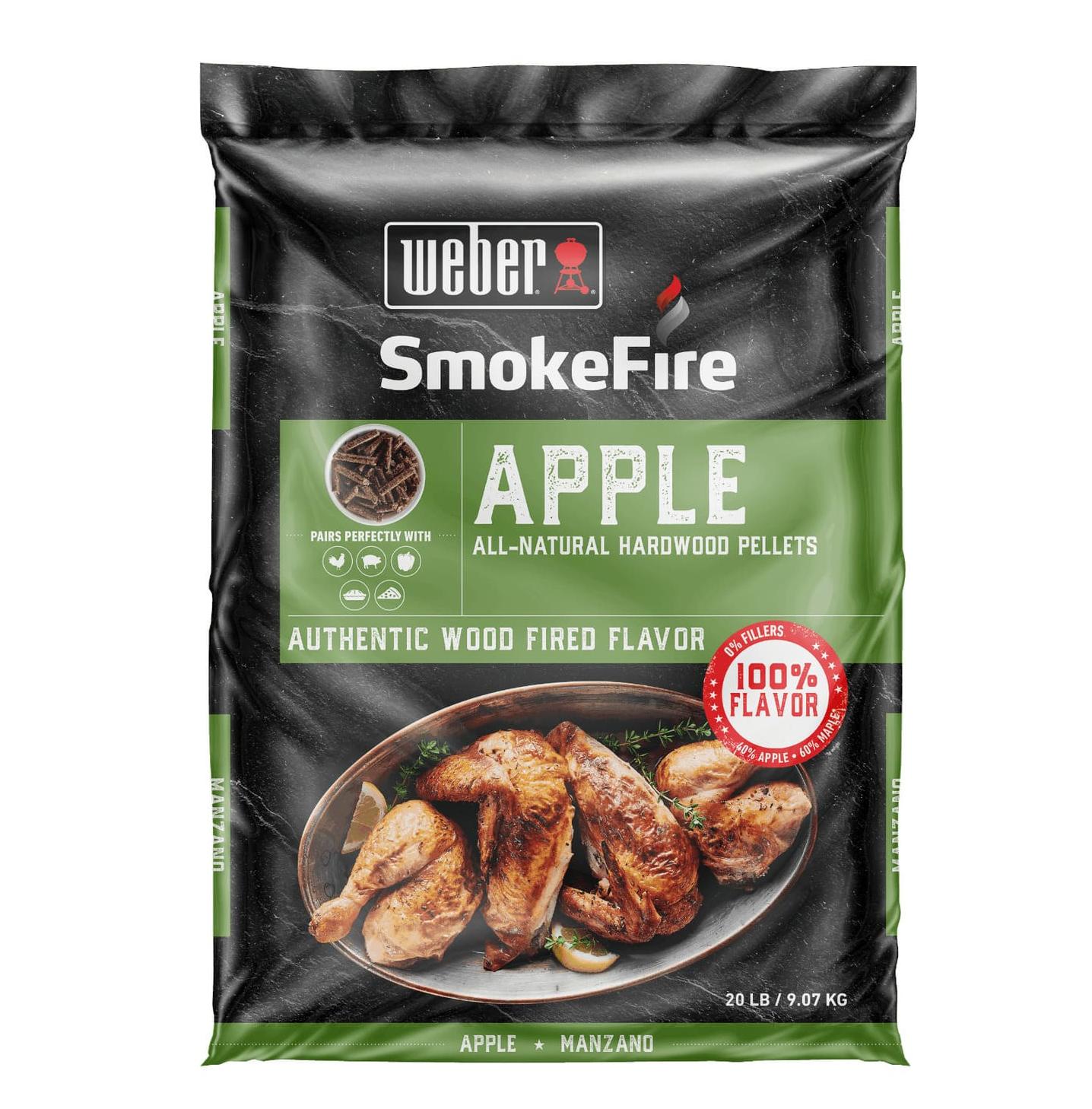 Пеллеты Weber Hard Wood Pellets, Apple из древесины твердых лиственных пород обладают тонким ароматом и придают любому блюду неповторимый вкус. Размеры коробки: 40 x 30 x 15 см. Вес - 9 кг