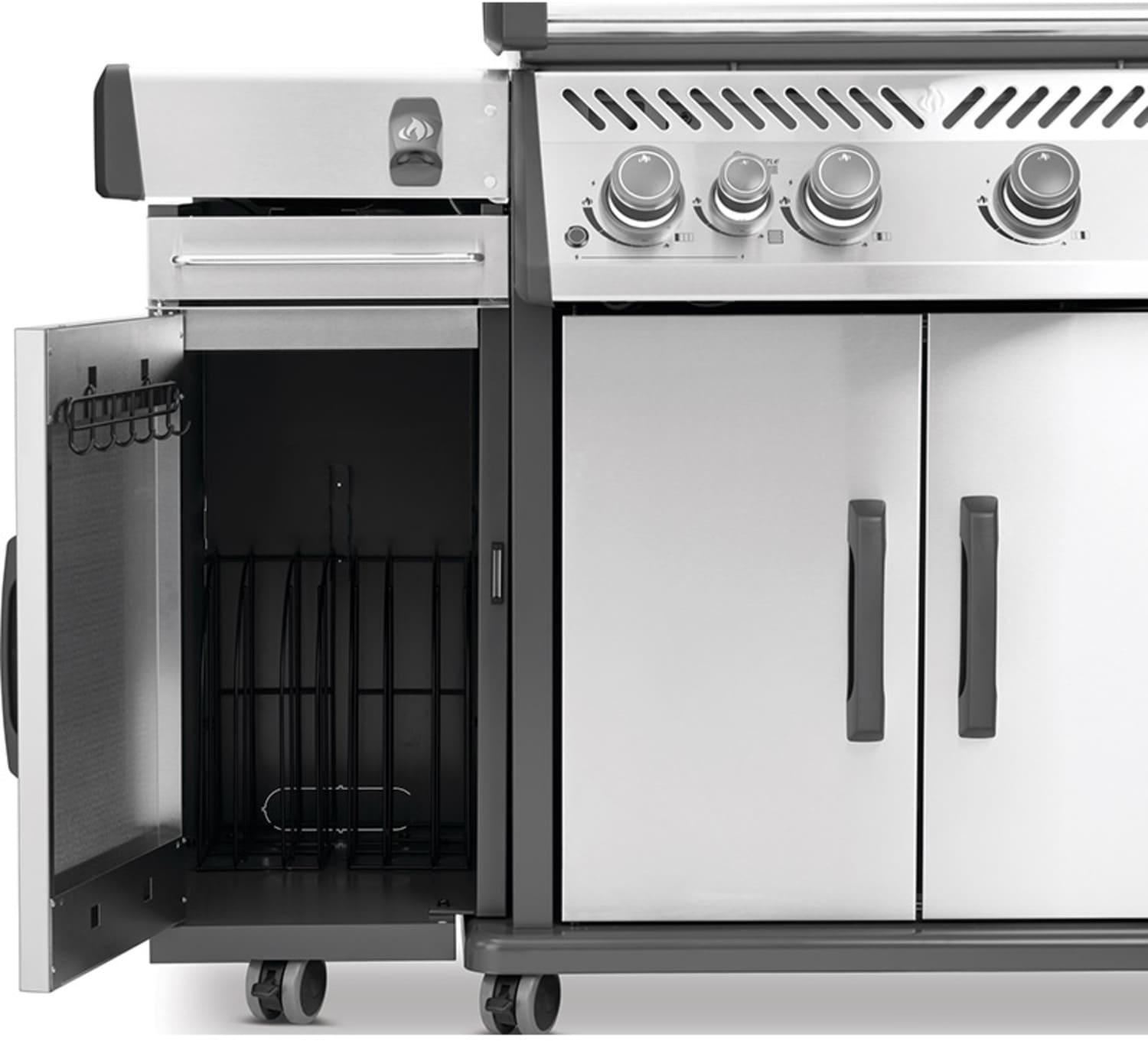 Тумба Napoleon для газовых грилей серии Rogue поможет организовать рабочее пространство вокруг гриля. Корпус и дверца из нержавеющей стали, большая пластиковая ручка - все выполнено в едином стиле с газовым грилем. Тумбу можно установить под любой из столиков гриля или поставить сразу две, создав полноценную кухню с системой хранения. Размеры тележки: 34 х 47 х 78 см