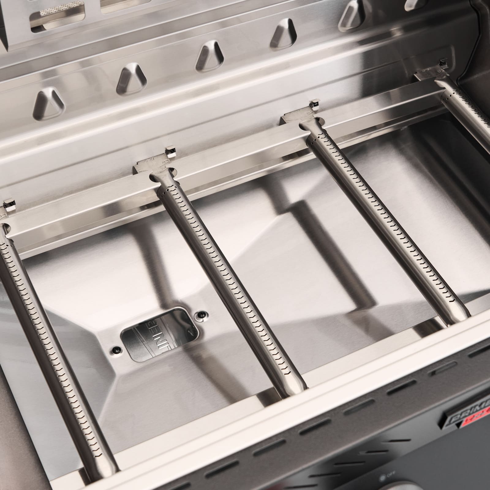 Дополнительная газовая горелка мощностью от 3 до 4 кВт. Располагается на одном из боковых рабочих столиков. Оснащена защитной крышкой и отдельной кнопкой пьезо-поджига. В закрытом состоянии крышка образует единую плоскость со столешницей. Обычная боковая горелка - это горелка открытого пламени с чугунной или металлической решеткой над ней. Инфракрасная боковая горелка не имеет открытого пламени, так как между горелкой и решеткой находится керамическая пластина, которая нагревается до 700-900 градусов и позволяет жарить быстро и эффективно.